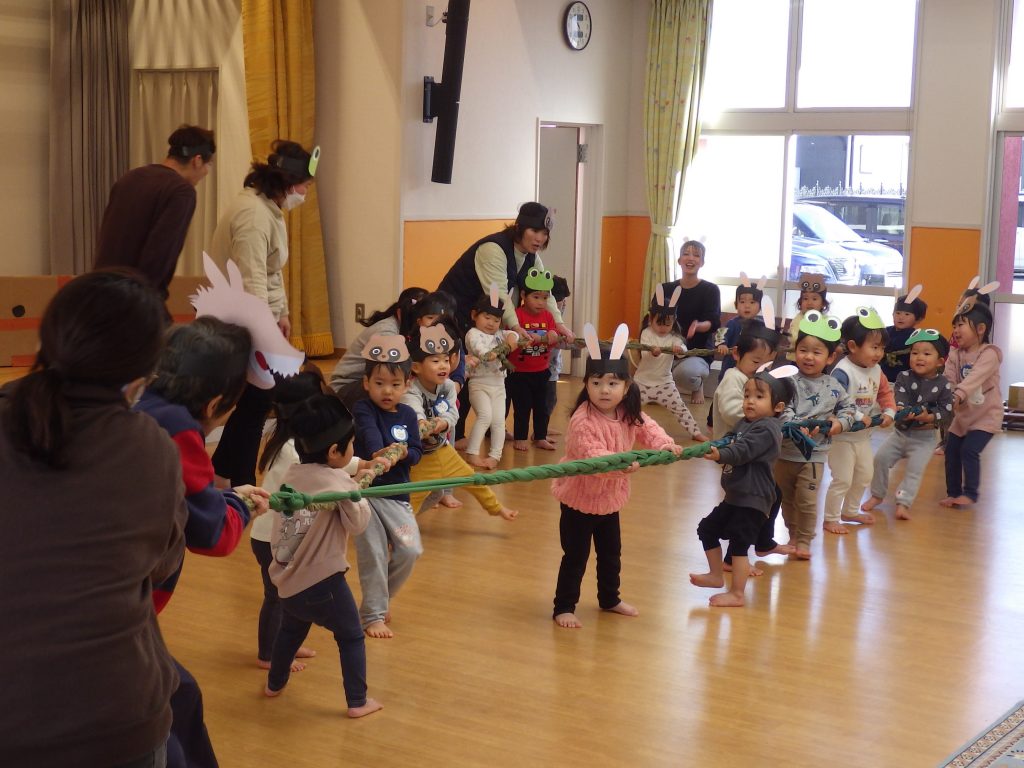 オオカミさんや園長先生、主任と綱引き対決